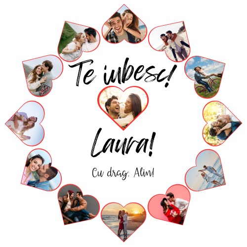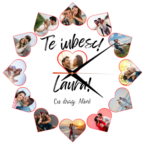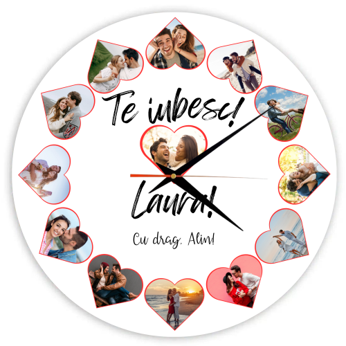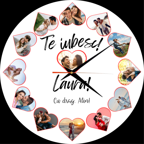 Ceas pentru iubiti / cuplu, personalizat, cu 13 poze și nume – Te iubesc