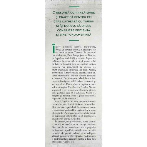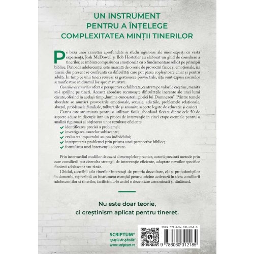 Prin intermediul studiilor de caz si al exemplelor practice, autorii prezinta metode prin care consilierii pot dezvolta strategii de interventie eficiente, adaptate nevoilor specifice fiecarui adolescent sau tanar.