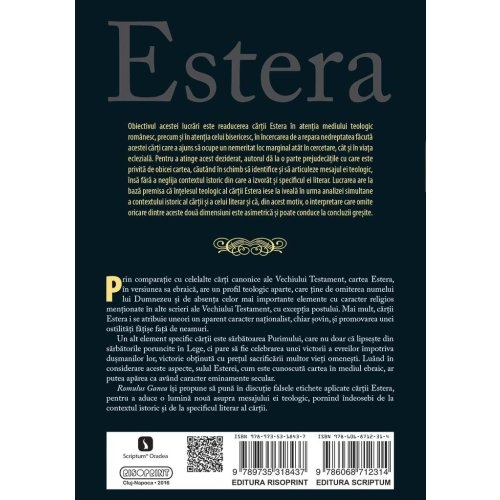 Romulus Ganea isi propune sa puna in discutie falsele etichete aplicate cartii Estera, pentru a aduce o lumina noua asupra mesajului ei teologic, pornind indeosebi de la contextul istoric si de la specificul literar al cartii.