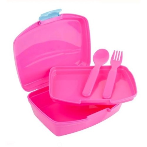 Cutie mancare, roz - Unicorn + lingura si furculita (550 ml)