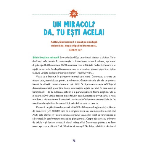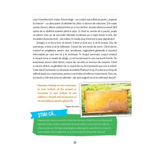Fiecare povestioara contine o sectiune intitulata „Stiai ca...“ – cu informatii fascinante, activitati practice si o rugaciune de incheiere.