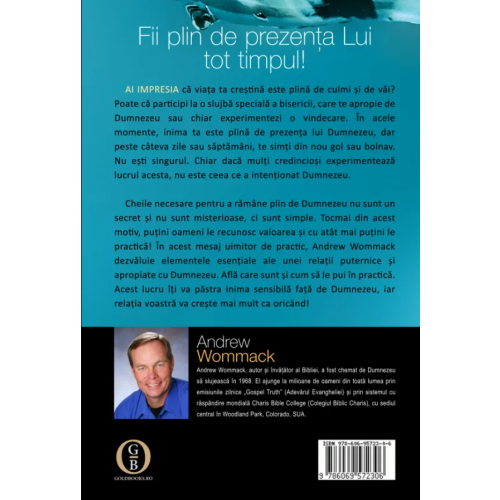 "Descoperă cheile necesare pentru a rămâne plin de Dumnezeu" este o lucrare esențială a reputatului autor și învățător biblic, Andrew Wommack. Este o carte cu o profundă înțelepciune, abordând nevoia creștinilor de a menține o conexiune consistentă și profundă cu Dumnezeu.