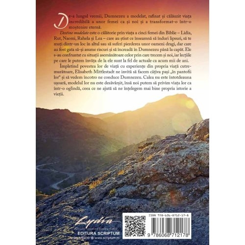 Destine modelate este o calatorie prin viata a cinci femei din Biblie – Lidia, Rut, Naomi, Rahela si Lea – care au stiut ce inseamna sa induri lipsuri, sa te muti dintr-un loc in altul sau sa suferi pierderea unor oameni dragi, dar care au fost gata sa-si asume riscuri si sa se increada in Dumnezeu pana la capat. Ele s-au confruntat cu situatii asemanatoare celor prin care trecem si noi, iar lectiile pe care le putem invata de la ele sunt la fel de actuale ca acum mii de ani.