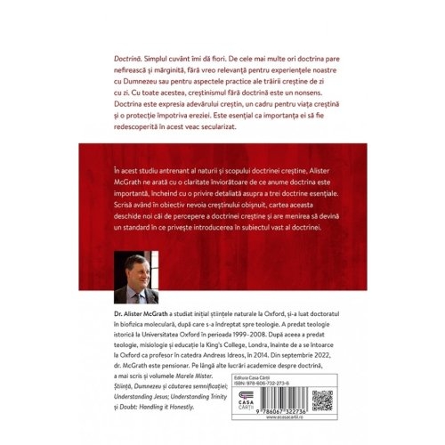 În acest studiu antrenant al naturii și scopului doctrinei creștine, Alister McGrath ne arată cu o claritate înviorătoare de ce anume doctrina este importantă, încheind cu o privire detaliată asupra a trei doctrine esențiale. Scrisă având în obiectiv nevoia creștinului obișnuit, cartea aceasta deschide noi căi de percepere a doctrinei creștine și are menirea să devină un standard în ce privește introducerea în subiectul vast al doctrinei.