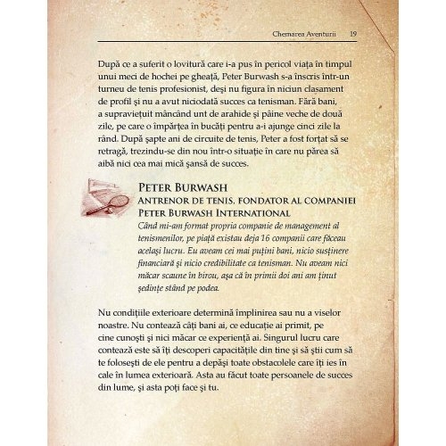 Imaginează-ţi că ar exista o hartă care să-ţi arate cum poţi ajunge din situaţia ta actuală la viaţa cea mai grozavă, cea mai bogată, cea mai satisfăcătoare şi cea mai sublimă pe care ai putea visa vreodată să o trăieşti. Imaginează-ţi că această hartă ţi-ar putea arăta fiecare pas pe care trebuie să îl faci de-a lungul călătoriei către această viaţă: cum îţi poţi realiza visele, cum poţi depăşi toate obstacolele apărute şi toate dificultăţile, cum poţi sfida soarta şi cum te poţi convinge că dispui deja de toate capacităţile şi calităţile necesare pentru a fi victorios.