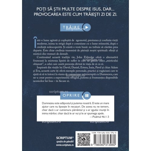 Continuand aceasta traditie vie, John Eldredge ofera o alternativa frumoasa la existenta lipsita de suflet in care ne gasim: calea „misticului obisnuit”, a celui care cauta prezenta divina in viata de zi cu zi.