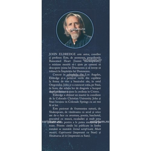 JOHN ELDREDGE este autor, consilier si profesor. Este, de asemenea, presedintele Ransomed Heart [Inimii rascumparate], o misiune menita sa-i ajute pe oameni sa descopere inima lui Dumnezeu si sa invete sa traiasca in Imparatia lui Dumnezeu.