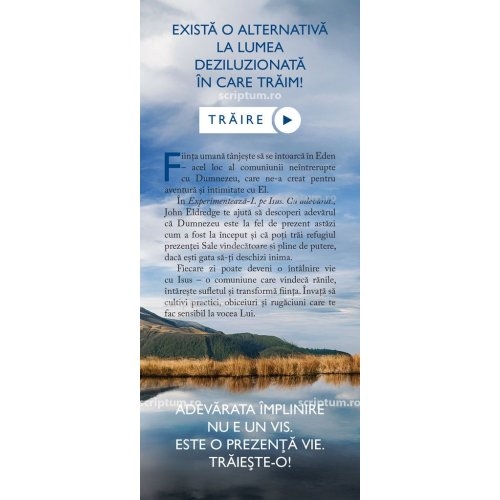 In Experimenteaza-L pe Isus. Cu adevarat., John Eldredge te ajuta sa descoperi adevarul ca Dumnezeu este la fel de prezent astazi cum a fost la inceput si ca poti trai refugiul prezentei Sale vindecatoare si pline de putere, daca esti gata sa-ti deschizi inima.