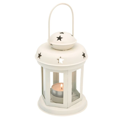 Felinar metalic bej pentru lumanare (10x15.5 cm)