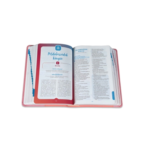 Biblia adolescentului vine către tinerii cititori într-un format prietenos, plină de culoare, încurajându-i să citească integral textul biblic (într-o ediție revizuită ortografic a traducerii lui Károli Gáspár). Notele și materialele suplimentare lărgesc perspectiva adolescenților, așezând Biblia într-o lumină optimă, pentru a fi văzută ca factor major de influență de-a lungul istoriei omenirii și ca manual credibil de reală dezvoltare personală.