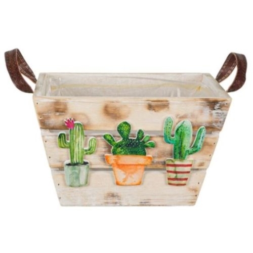 Ghiveci pentru flori din lemn - 3 Cactusi (21x21x12cm)