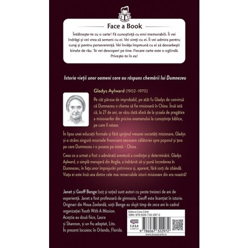 Ceea ce a urmat a fost o adevărată aventură a credinței și determinării. Gladys Aylward, o simplă menajeră din Anglia, a îndrăznit să-și pună încrederea în Dumnezeu, în fața unor împrejurări potrivnice și, aparent, fără sorți de izbândă. Viața ei este însă una dintre cele mai remarcabile istorii misionare din era noastră!