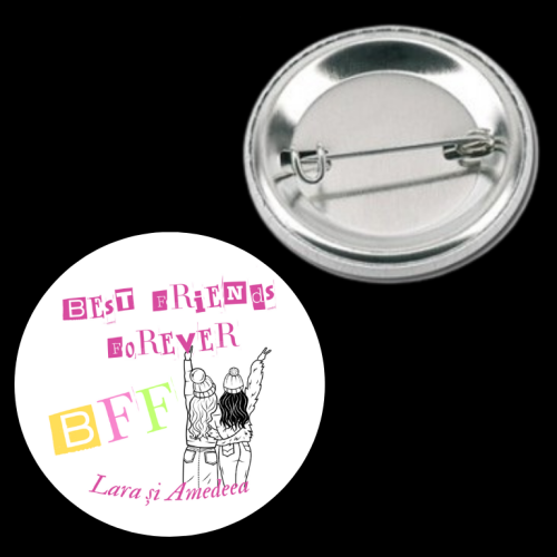 Oferiți un cadou memorabil și unic cu o insignă metalică personalizată, ideală pentru a celebra prietenia voastră specială. Această insignă personalizată este perfectă pentru orice ocazie, adăugând o notă personală și distinctă. Fie că optați pentru o insignă metalică personalizată cu nume sau pentru o insignă metalică personalizată cu mesajul „Best Friends Forever”, acest cadou va fi cu siguranță apreciat și purtat cu mândrie.