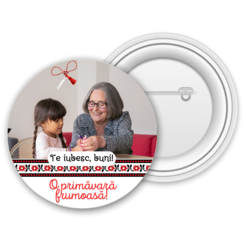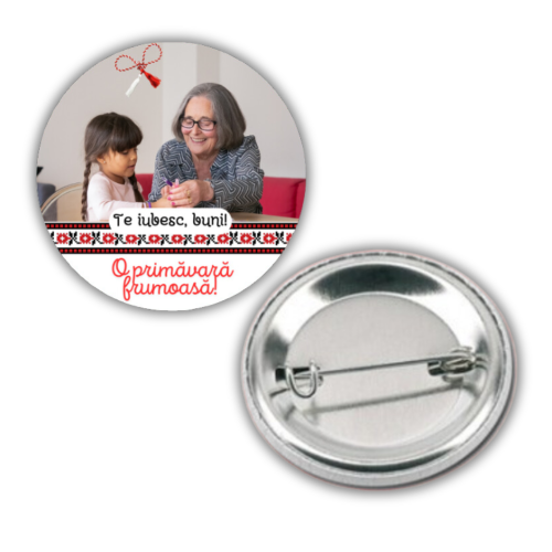 Insignă metalică personalizată cu poză și text – Mărțișor
