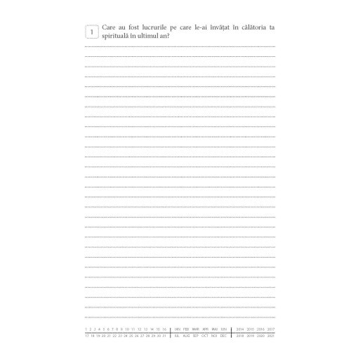 Abordarea onestă și liberă a acestor întrebări te poate ajuta într-un mod real. Cu toții fugim de întrebările esențiale care ne obligă să ne gândim viața, dar faptul că ai acest jurnal în mână îți spune că este timpul să abordezi și acele probleme pe care le-ai evitat uneori. Chiar dacă faci acest exercițiu în jurnalul tău, fă din când în când exercițiul împreună cu altcineva. Nu răspunde doar în minte. Mintea lucrează mult mai bine când pui pe hârtie ceea ce gândești sau îți verbalizezi gândurile. Obligă-te, în felul acesta, să fii logic și atent cu detalii peste care ești tentat să treci rapid mai departe. Din astfel de exerciții se dezvoltă adevăratele schimbări interioare.