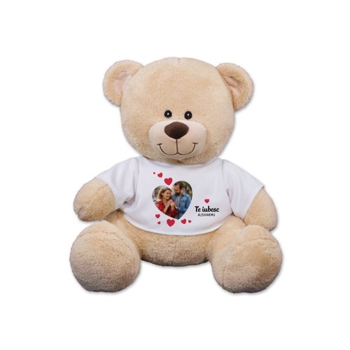 Jucărie de pluș personalizată cu nume și poză – Te iubesc