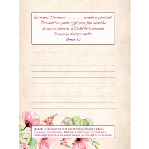 Jurnalul îți propune un studiu organizat pe teme simple și ușor de înțeles, cu întrebări finale care să te ajute să extragi concluziile cu care să mergi mai departe. Este foarte ușor de folosit, oferind combinația ideală de rubrici pentru a urmări, în timp, progresul făcut în cunoașterea Bibliei. În plus, are un design plăcut, care face din el un cadou potrivit pentru persoanele pe care le prețuiești. Îți vor fi de folos și paginile de planner de la final sau cele cu exerciții de caligrafie. Pe scurt, un tovarăș de călătorie „tăcut” și „vorbăreț” deopotrivă, pentru drumul care îți stă în față. Să te bucuri de el, „la pas cu... Dumnezeu”!