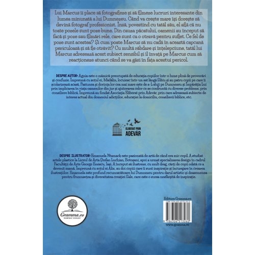 DESPRE AUTOR: Agnia este o mămică preocupată de educația copiilor într-o lume plină de provocări și confuzie. Împreună cu soțul ei, Mădălin, locuiesc într-un sat lângă Sibiu și au patru copii pe care îi școlarizează acasă. Pasiunea și dorința lor cea mai mare este de a-L sluji pe Dumnezeu și Împărăția Lui prin implicarea în viața oamenilor din jur și ajutorarea celor ce se confruntă cu diverse probleme, prin consiliere biblică. Împreună au fondat Asociația Eliberat prin Adevăr, prin care adresează subiecte de interes actual din domeniul adicțiilor, educației la domiciliu, consilierii biblice, etc.