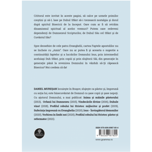 Spre deosebire de cele patru Evanghelii, cartea Faptele apostolilor nu se încheie cu „Amin”. Oare nu ar putea fi și aceasta o sugestie a continuității faptelor și a lucrărilor Domnului Isus, prin intermediul aceluiași Duh Sfânt, prin copiii și prin slujitorii Săi, din generație în generație până la revenirea Domnului în văzduh să-Și răpească Biserica? Noi credem că da!