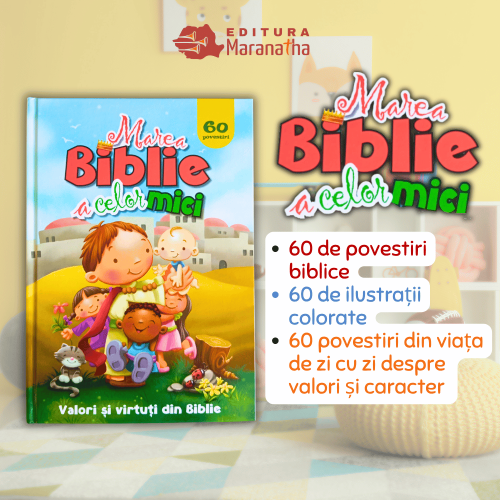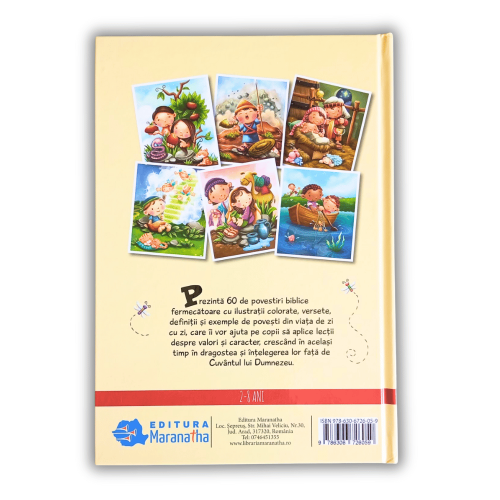 Conține 60 de povești biblice fermecătoare, însoțite de ilustrații colorate, versete, definiții și exemple din viața de zi cu zi, care îi vor ajuta pe copii să aplice lecții despre valori și caracter, crescând în același timp dragostea și înțelegerea față de Cuvântul lui Dumnezeu.