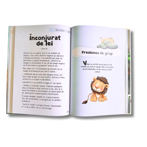 Creează punți între Biblie și viața reală – fiecare poveste este completată de exemple moderne ușor de înțeles pentru copilul tău.