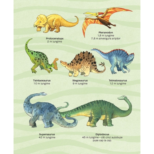 Dinozaurii au fost cele mai mari animale care au păşit vreodată pe Pământ. Deschide paginile cărţii pentru a descoperi unele dintre cele mai lungi, mai grele şi mai înfricoşătoare dintre toate vietăţile – de la masivii brachiozauri, la înspăimântătorii tiranozauri.