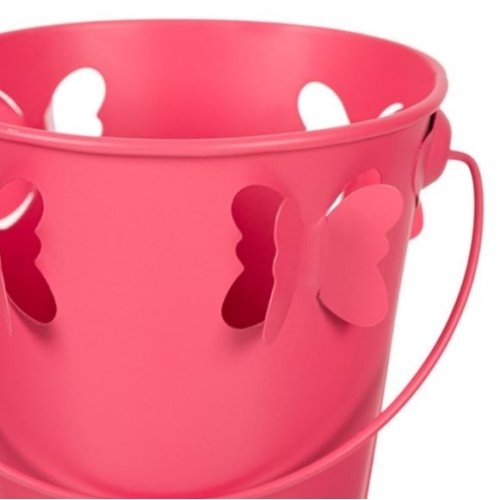 Masca pentru ghiveci, de metal, roz, in forma de galeata - Fluturi 3D (11x10.5cm)