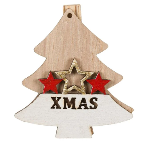 Mini clame din lemn de Craciun - Brazi , Xmas, 5 buc.