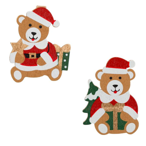 Mini clame din lemn de Craciun - Ursuleti, 6 buc.