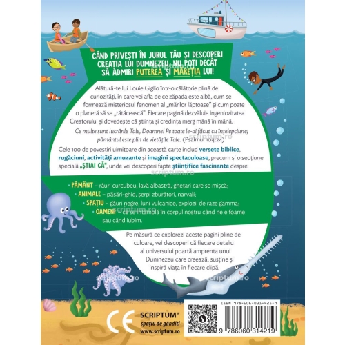 Cele 100 de povestiri uimitoare din aceasta carte includ versete biblice, rugaciuni, activitati amuzante si imagini spectaculoase, precum si o sectiune speciala „Stiai ca”, unde vei descoperi fapte stiintifice fascinante despre:
