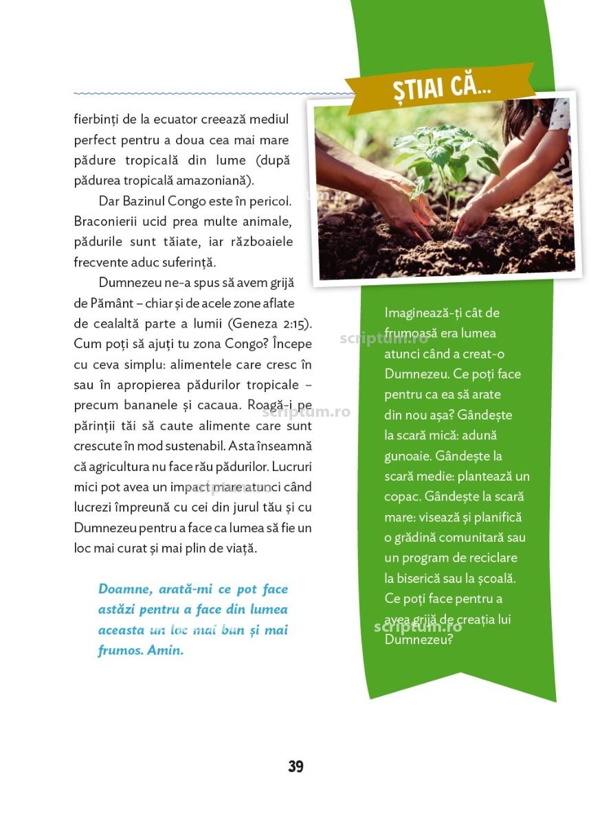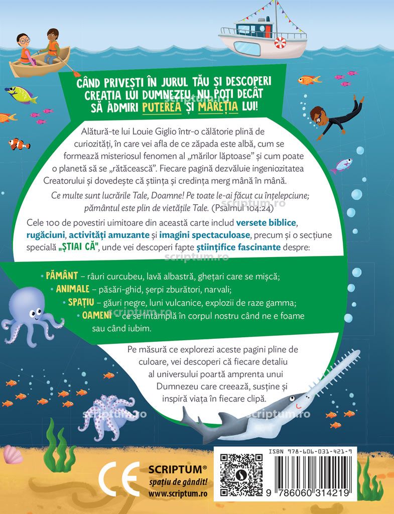 Pe masura ce explorezi aceste pagini pline de culoare, vei descoperi ca fiecare detaliu al universului poarta amprenta unui Dumnezeu care creeaza, sustine si inspira viata in fiecare clipa.