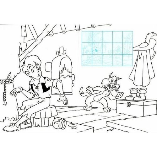 Motanul încălţat (Lipește și colorează)