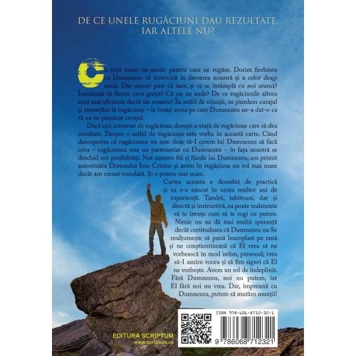 Daca esti interesat de rugaciune, doresti o viata de rugaciune care sa dea rezultate. Despre o astfel de rugaciune este vorba in aceasta carte. Cand descoperim ca rugaciunea nu este doar sa-I cerem lui Dumnezeu sa faca ceva – rugaciunea este un parteneriat cu Dumnezeu – in fata noastra se deschid noi posibilitati. Noi suntem fiii si fiicele lui Dumnezeu, am primit autoritatea Domnului Isus Cristos si avem in rugaciune un rol mai mare decat am crezut vreodata. Si o putere mai mare.