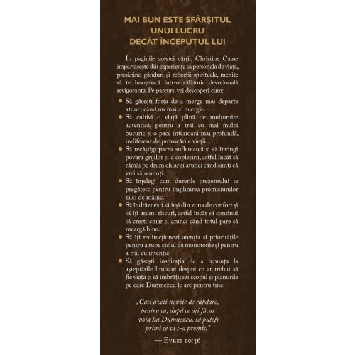 In paginile acestei cartii, Christine Caine impartaseste din experienta sa personala de viata, presarand ganduri si reflectii spirituale, menite sa te insoteasca intr-o calatorie devotionala revigoranta. Pe parcurs, vei descoperi cum: