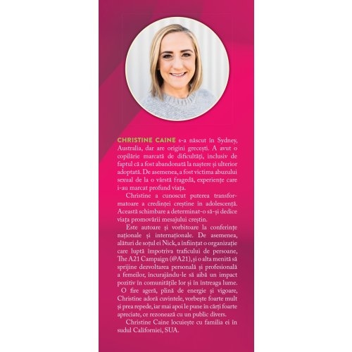 In ultimii ani, in cele mai grele zile ale mele, tot ce voiam sa fac era sa ma tarasc inapoi in pat, astfel incat sa nu trebuiasca sa ma confrunt cu realitatea. Viata mea nu era asa cum ma asteptasem si aveam nevoie cu disperare de timp pentru a ma conforma schimbarilor. In cartea Nu privi inapoi, Christine ne ghideaza pe aceia dintre noi care ne-am blocat in durere si in trecut si care vrem sa prosperam mergand mai departe spre un viitor plin de speranta. Aceasta este o carte de care te poti bucura singur, insa pe care o poti impartasi cu cei dragi, care au de asemenea nevoie de incurajare!