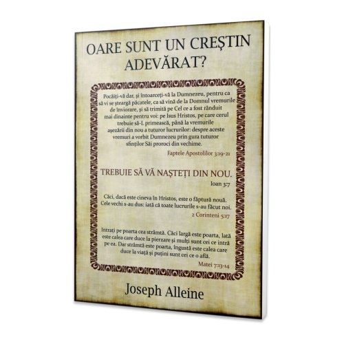 Texte sugestive: Această carte in limba engleza a fost publicată sub diferite titluri cum ar fi:" Un semnal de alarmă pentru cei neconvertiţi", "Un ghid sigur către cer"şi multe altele.Acest titlu l-am ales,deoarece,în opinia mea,acest titlu se potriveşte cel mai bine cu conţinutul cărţii.Cartea aceasta trebuie citită neaparat de orice om, indiferent de statutul social sau cel material pe care il are,indiferent de locul pe care-l ocupă într-o biserică,si indiferent de ceea ce crede despre el sau de ceea ce cred alţii despre el. Trăim intr-o lume plina de înşelăciune. Diavolul numit si inselatorul,deoarece numele acesta îi descrie atât caracterul cat şi interesul.Iată ce doreste el de la tine:să te înşele,să te amăgeasă,sa te castige pentru el.Domnul sa te ajute si sa nu te lase prizonier diavolului.Tot ceea ce face el are doar un scop:ca să-şi atingă ţinta.Ca sa-i înşela pe unii oameni,el foloseşte lucrurile lumii acesteia,îi momeste cu ele si îi face să fie preocupaţi cu ele şi să le iubească. Dacă te-a adus si pe tine în stadiul acesta si si-a atins scopul si în viaţa ta, este mulţumit şi s-ar prea putea să nu te mai deranjeze dupa.Dar pe unii oameni nu-i poate înşela cu lucrurile lumii acesteia si nici cu înşelăciunea bogăţiilor, şi cu toate celelalte stricăciuni ale acestei lumi, aşa că, schimbă tactica.Dar tu nu uita: scopul lui este să te înşele indiferent de mijloacele de care se foloseşte. De aceea se va folosi de lucrurile bune cu care te preocupi: rugăciunea,citirea Bibliei,participarea la întâlnirile bisericii,dărnicia şi te va face să te încrezi în ele pentru a fi acceptat in fata lui Dumnezeu. Dar lucrul respectiv se întâmplă foarte subtil încât nici nu îţi dai seama că ar putea să fie vorba despre tine.Nu te lasa,ci increde-te mereu in Domnul.Iadul va fi plin de oameni care au făcut lucruri rele pe pământ, dar toţi se aseamănă,deoarece: au fost înşelaţi.