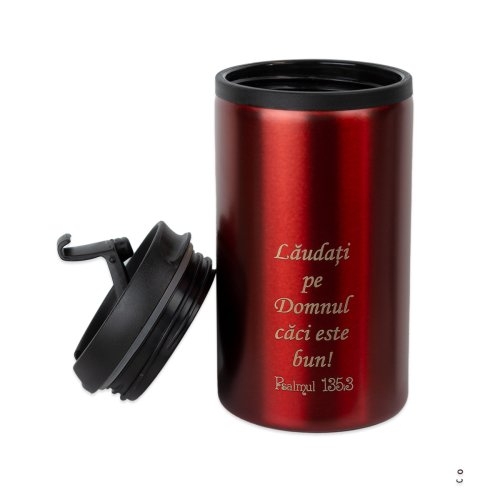 Pahar termos, metalic, roșu - "Lăudați pe Domnul!"