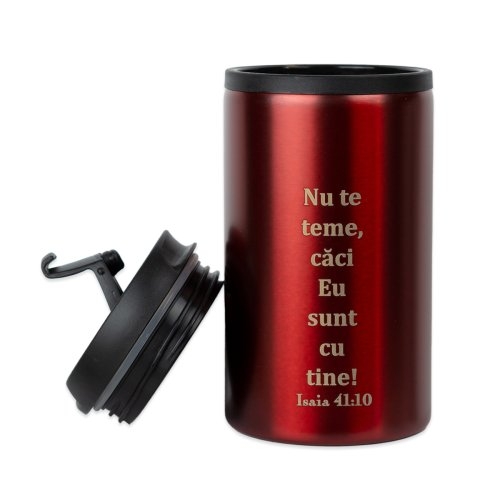 Pahar termos, metalic, roșu - "Nu te teme!"