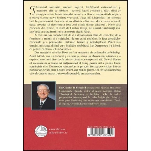 Teroristul convertit, autorul inspirat, invatatorul extraordinar si mentorul plin de rabdare – aceasta figura colosala a pasit plina de curaj pe scena lumii primului secol si a lasat o amprenta de nesters a maretiei, care nu va fi uitata vreidata. Viata lui? Magnifica! Iar lucrarea lui? Impresionanta. Considerat un sfant de catre unii din vremea noastra, dupa propria lui descriere a fost „cel dintai dintre pacatosi”. Nicio alta persoana din Biblie, in afara de Cristos insusi, nu a avut o influenta mai profunda asupra lumii lui si a noastre decat Pavel.