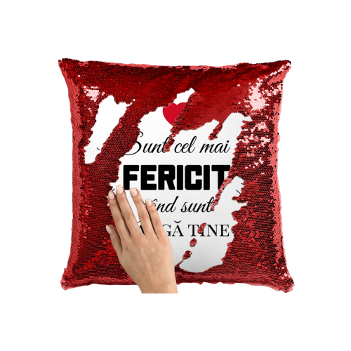 Transformați fiecare moment într-o amintire de neuitat cu perna personalizată cu husa de paiete sublimabile și un mesaj special care spune “Sunt cel mai fericit/fericită când sunt lângă tine.” Această pernă nu doar adaugă un strop de strălucire în decorul casei voastre, ci și transmite un sentiment puternic de iubire și afecțiune.