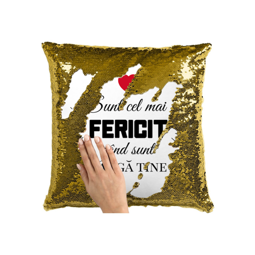 Transformați fiecare moment într-o amintire de neuitat cu perna personalizată cu husa de paiete sublimabile și un mesaj special care spune “Sunt cel mai fericit/fericită când sunt lângă tine.” Această pernă nu doar adaugă un strop de strălucire în decorul casei voastre, ci și transmite un sentiment puternic de iubire și afecțiune.