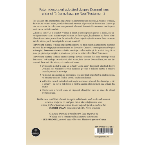 Am studiat figura istorică a lui Isus timp de zeci de ani, dar detectivul Wallace a venit cu direcții noi la care nu mă gândisem până atunci. Persoana căutată e perfectă pentru un sceptic care e dispus să ia în considerare dovezile în favoarea lui Isus sau pentru un credincios care vrea să se adâncească în credința lui. - Sean McDowell, profesor la Biola University, vorbitor și autor al cărții Chasing Love