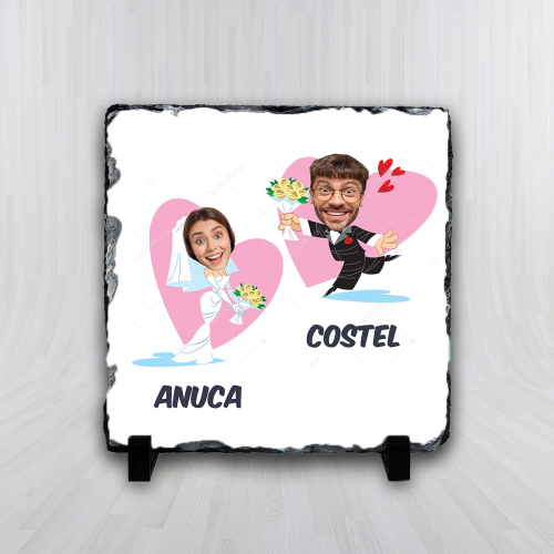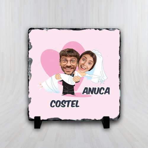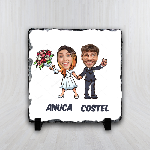 Expresivitatea și rafinamentul designului de pe placă fac ca acest cadou să fie cu adevărat deosebit. Placa de ardezie personalizată cu caricaturi nu este doar un obiect decorativ, ci și o amintire unică și veselă a momentului vostru special.