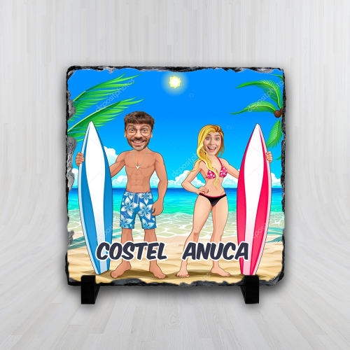 Fie că este vorba despre o aniversare, o zi de naștere sau o ocazie specială, această placă ardezie va face cu siguranță o impresie durabilă. Cu o caricatură a ta și a partenerului tău, fiecare detaliu al designului este creat cu atenție și talent artistic pentru a reflecta în mod autentic personalitățile voastre.