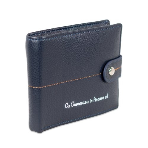Portofel bărbați cu mesaj crestin, bleumarin inchis - Cu Dumnezeu in fiecare zi!