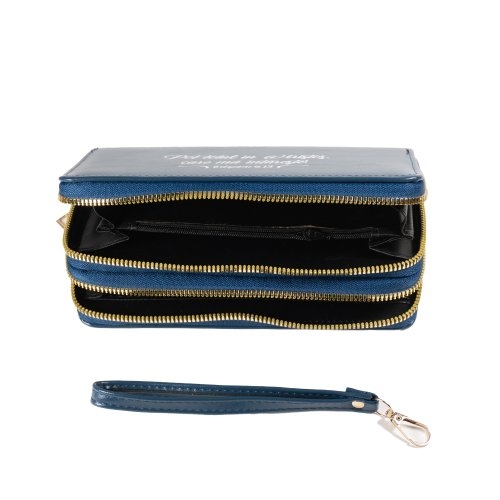 Portofel damă, 2 fermoare, bleumarin, cu imprimeu "Pot totul în Hristos..."