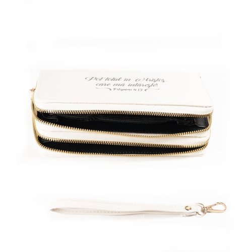 Portofel damă, 2 fermoare, crem, cu imprimeu "Pot totul în Hristos..."