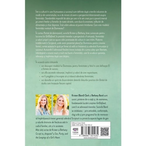În cartea Portret de domnișoară surorile Kristen și Bethany, bine cunoscute pentru lucrarea lor GirlDefined, le prezintă tinerelor o perspectivă a frumuseții, feminității și valorii proprii care se opune celei promovate de cultura în care trăim. Puternic înrădăcinată în Scriptură, unde avem prezentat planul lui Dumnezeu pentru crearea femeii, cartea aceasta ajută femeile să vadă ce înseamnă cu adevărat frumusețea și succesul. Autoarele fac o invitație fiecărei femei să urmeze calea spre libertate, îmbrățișând o viziune nouă și mult mai bună a feminității, care le va aduce speranța, relevanța și împlinirea după care tânjesc.