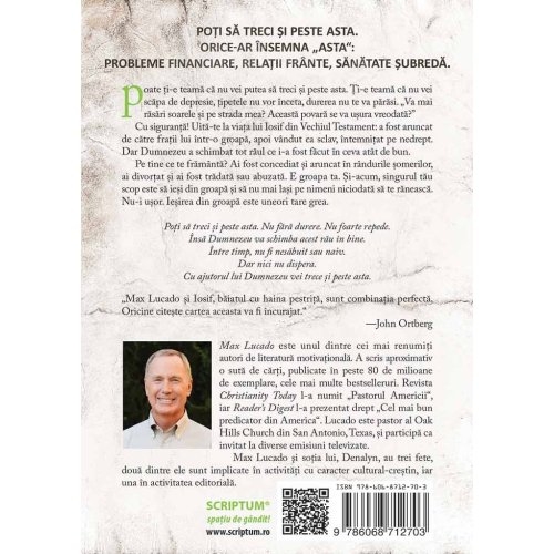 „Max Lucado si Iosif, baiatul cu haina pestrita, sunt combinatia perfecta. Oricine citeste cartea aceasta va fi incurajat.“