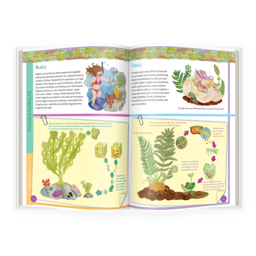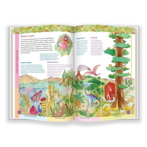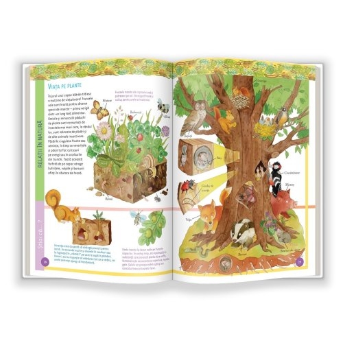 Primele plante • Algele • Ferigile • Medii de viață • Anotimpurile copacului • Alcătuirea plantelor • Funcțiile frunzei: fotosinteza, respirația și transpirația • Coniferele • Plante neobișnuite • Plante folositoare • Relații în natură • Ecologie: Poluarea • Reciclarea deșeurilor • Energia curată. Cu ajutorul cărții, copilul va descoperi lucruri esențiale despre știință, animale, natură și ecologie și își va dezvolta limbajul.